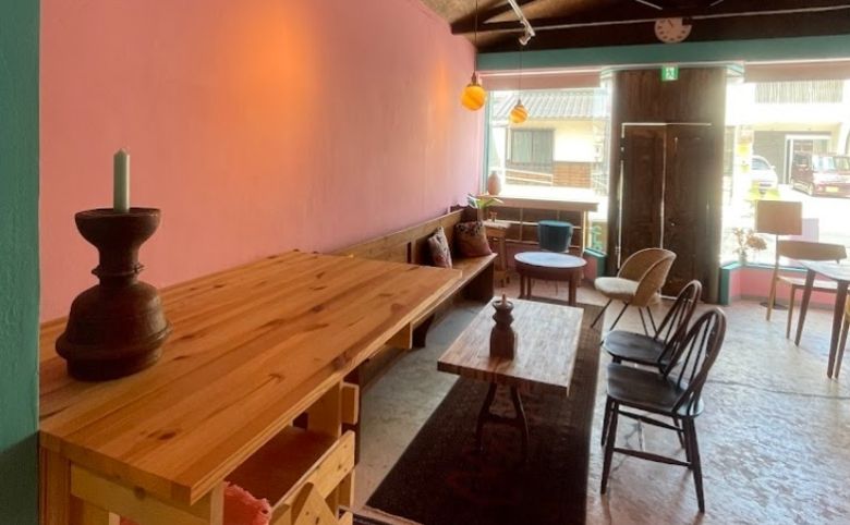 店内に入ると、ピンクを基調とした内装が印象的で、海外のカフェのような雰囲気が漂っている。松江の歴史的な城下町にありながら、どこか異国情緒を感じる空間になっている。